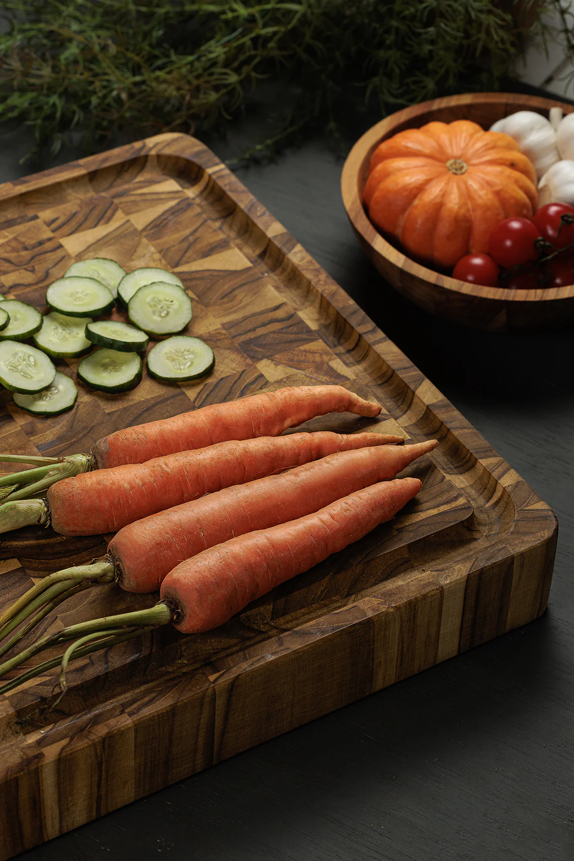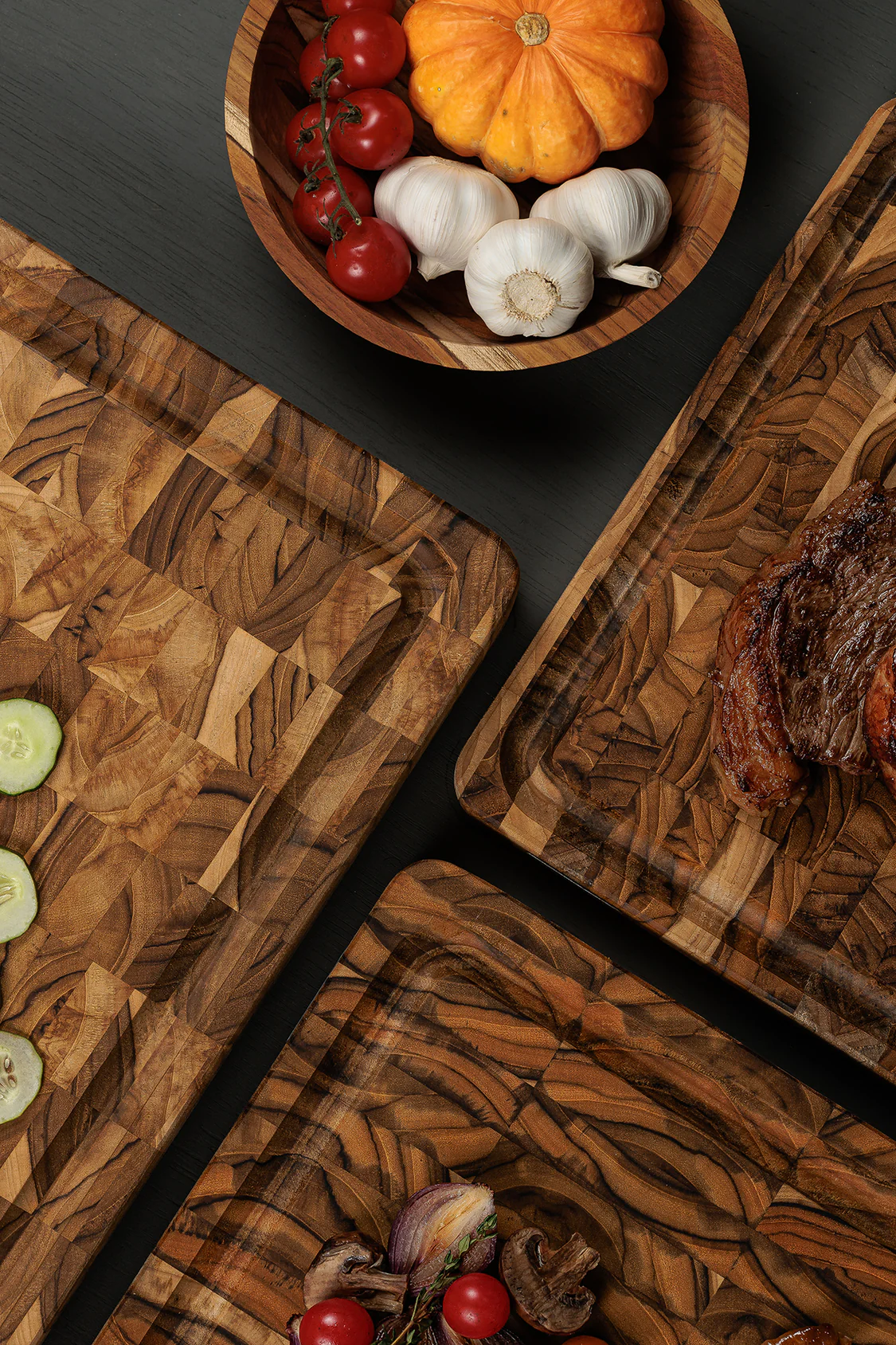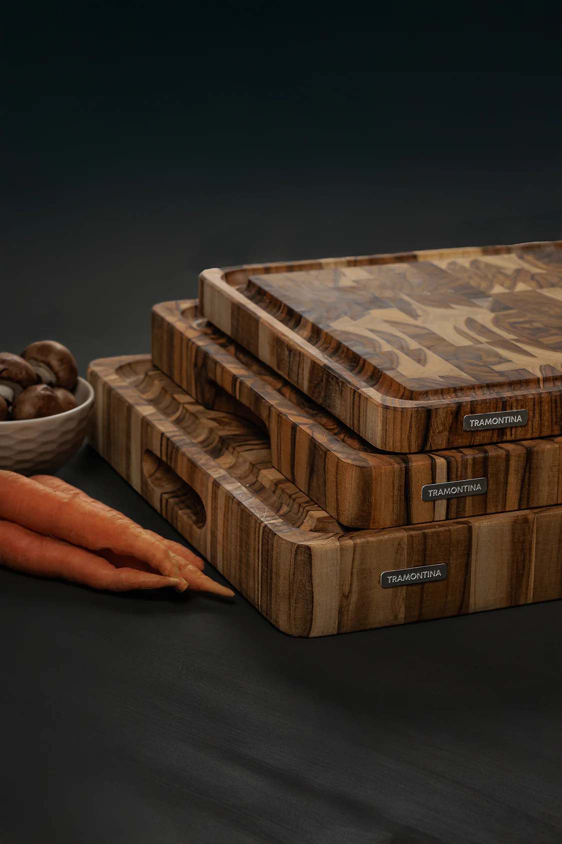 קרש החיתוך המקצועי של Tramontina עשוי מעץ טיק איכותי , מציע משטח עבודה רחב, חזק ועמיד.